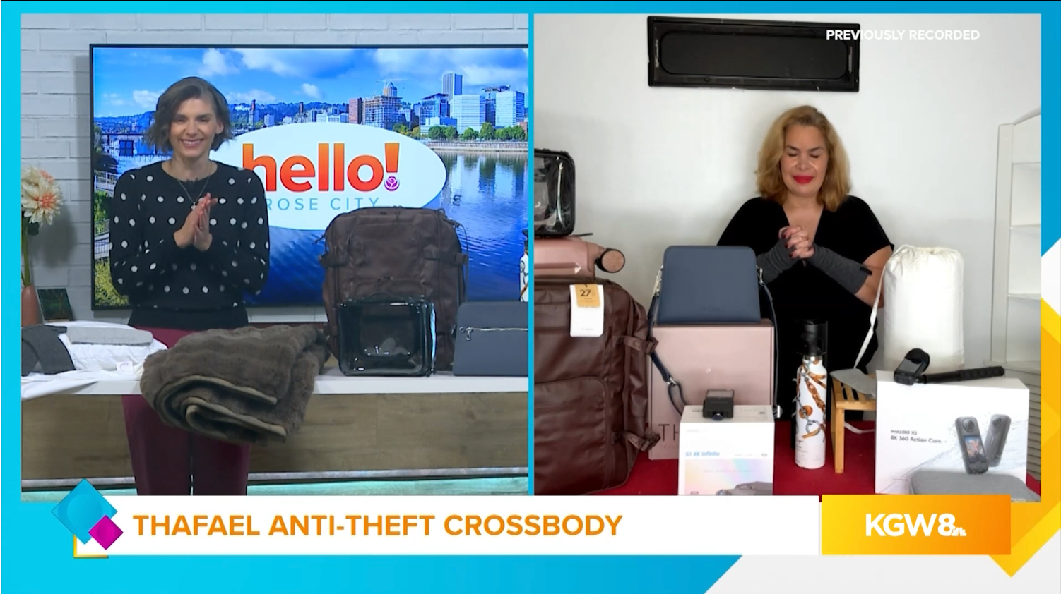Thafael is a women’s travel bag brand known for its sleek anti-theft crossbody bags designed for stylish, security-conscious travelers. The brand has been featured on national and regional television, including NBC 5 Texas Today,Good Day Stateline, and Hello Rose City, where TV hostKathy Copcutt highlighted the bag’s discreet security features and elevated design.